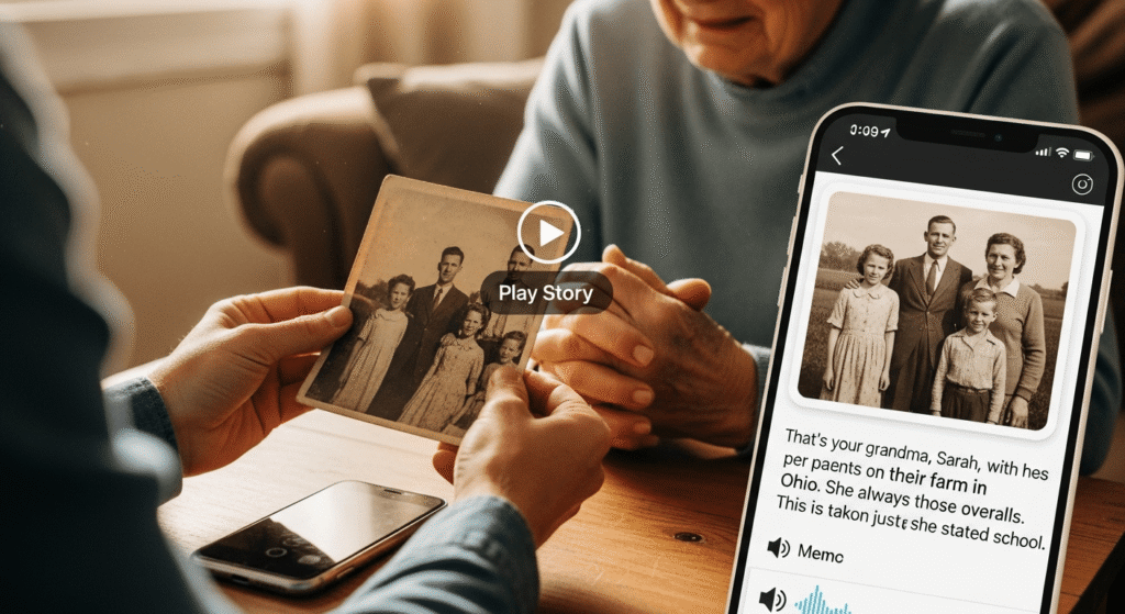 The Solution: This is less of an app and more of a time machine. You upload old photos, and the AI doesn’t just identify faces—it prompts you. “I see Grandma Susan and a 1960s Chevrolet. Want to record the story behind this?” You record a voice memo, and it gets attached to the photo forever. Now you can search, “Show me all photos of Uncle Joe and tell me the stories.” It’s powerful, personal, and profoundly human.